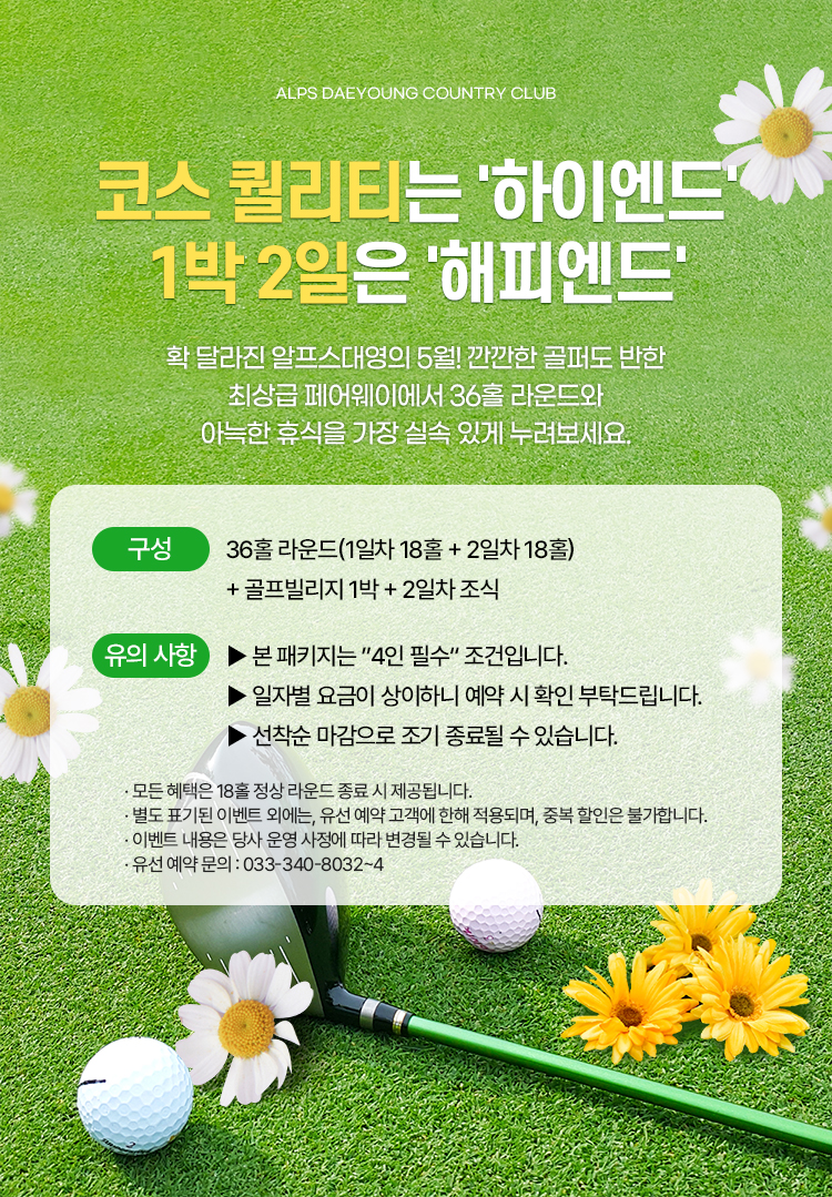 [5월 이벤트] 코스 퀄리티는 '하이엔드', 1박 2일은 '해피엔드'