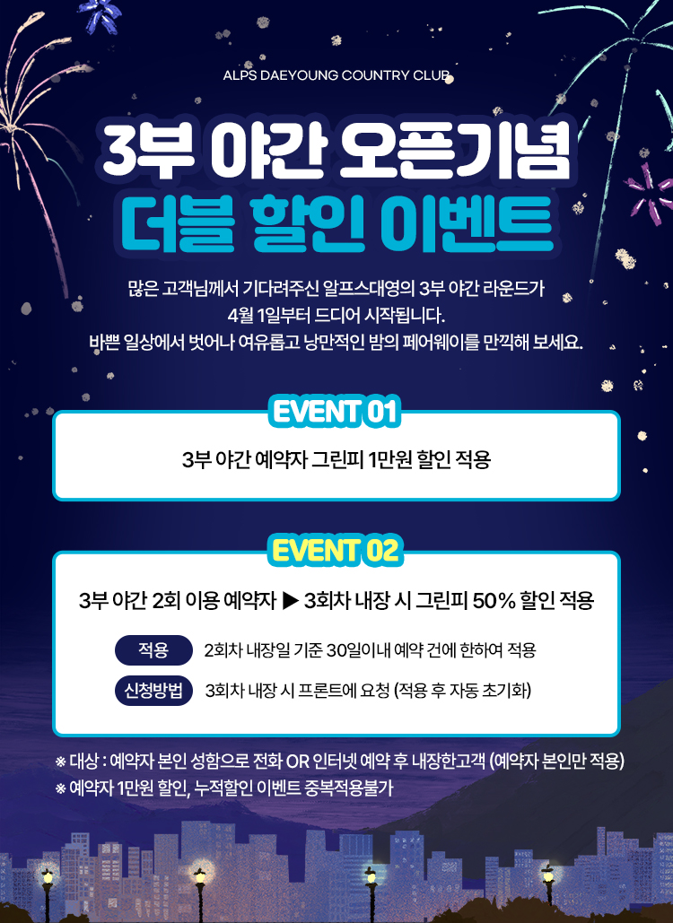 2026년 알프스대영 3부 야간 라운드 오픈 및 '더블 할인 이벤트' 안내