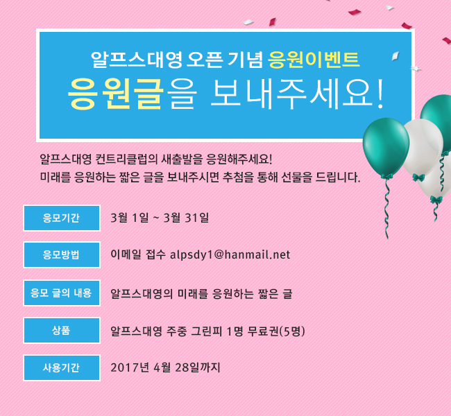알프스대영 오픈기념 이벤트! 응원글을 보내주세요! 이벤트 2