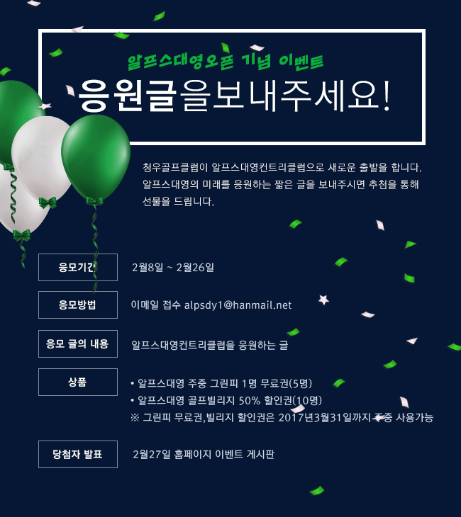 (알프스대영 오픈기념 이벤트)응원글을 보내주세요