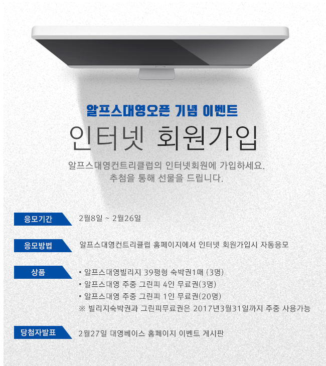 알프스대영 오픈기념 이벤트! 인터넷 회원가입